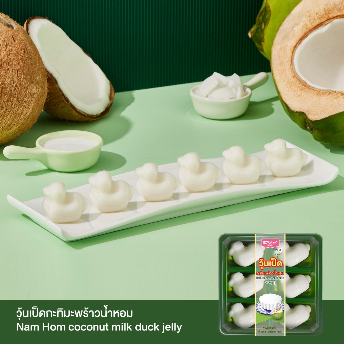 วุ้นเป็ดกะทิมะพร้าวน้ำหอม (Nam Hom coconut duck jelly)